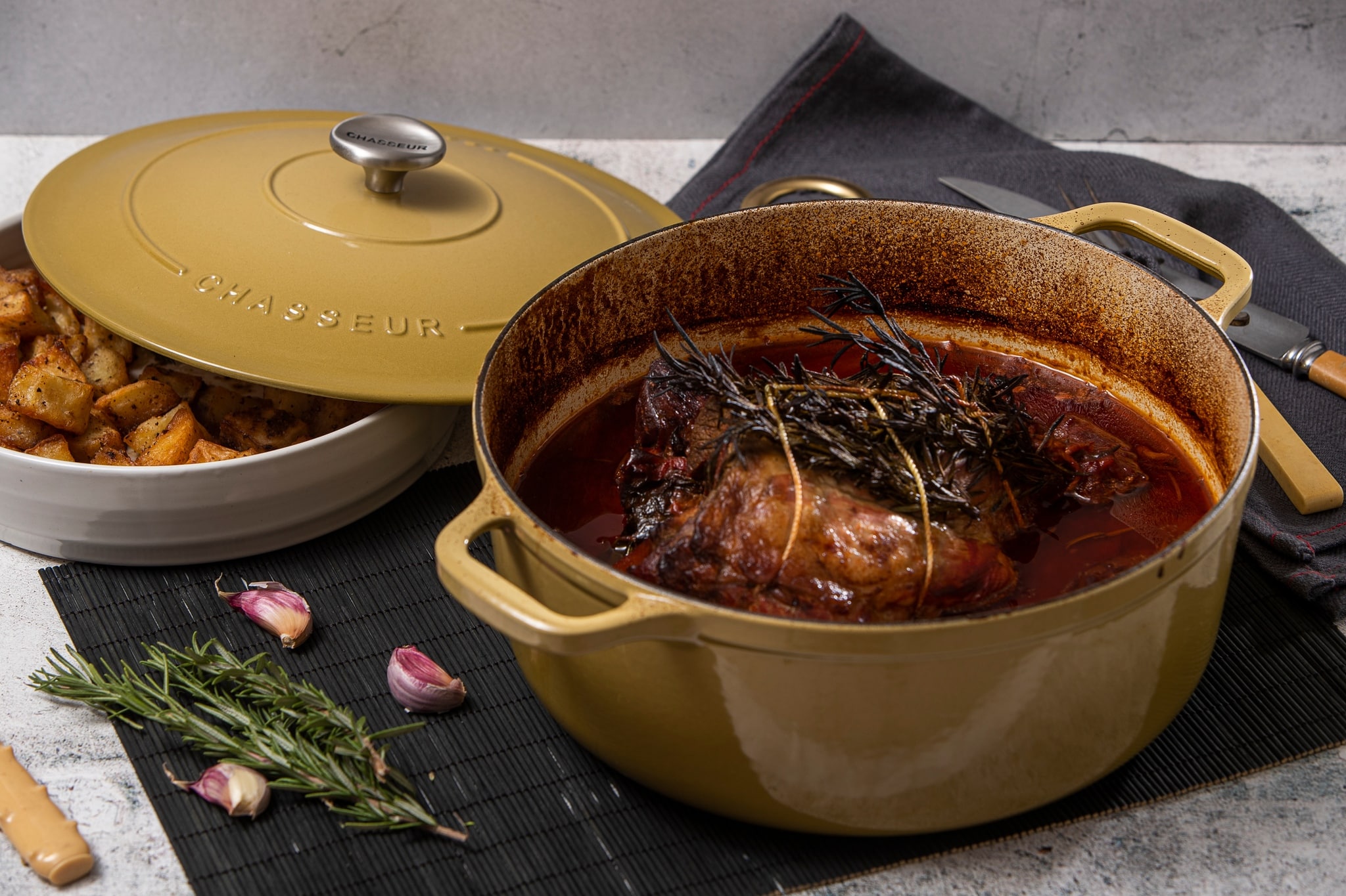 Beyond its timeless and classic aesthetic, Chasseur® cookware boasts practicality and beauty. The stylish enamelled finish not only enhances its visual appeal but also makes it suitable for seamless oven-to-table use. Whether grilling, simmering, roasting, or reheating, the Chasseur® range adapts to all heat sources, including induction. With internal rings under the lids promoting a self-basting effect by gathering and dripping moisture back onto the food, and a cast iron core ensuring quick and even heat distribution, Chasseur® stands as an enduring choice for a lifetime of gourmet cooking pleasure.